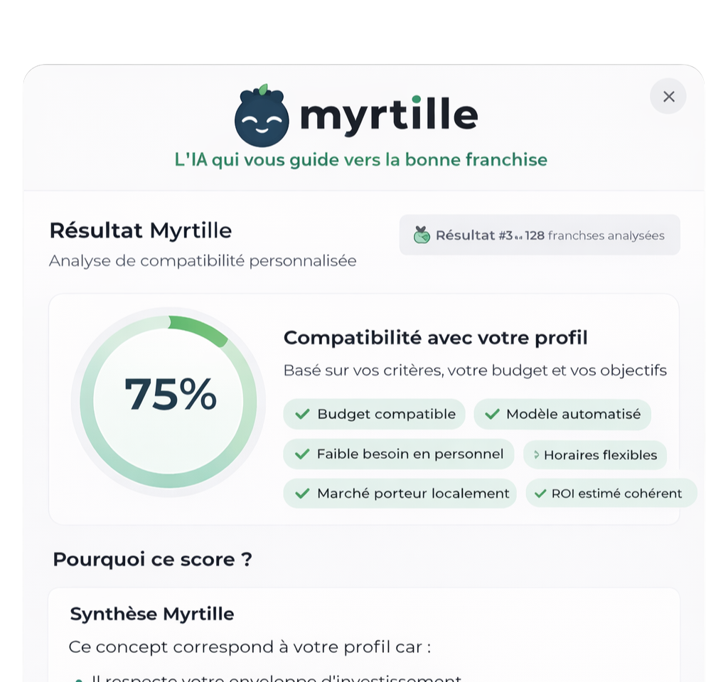 Myrtille sélectionne un podium de 3 franchises réellement pertinentes, pour vous permettre de comparer, comprendre et avancer sereinement.