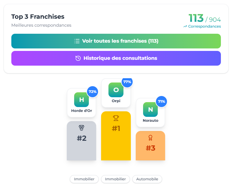 Les 3 franchises les plus compatibles avec votre profil, classées par concordance.